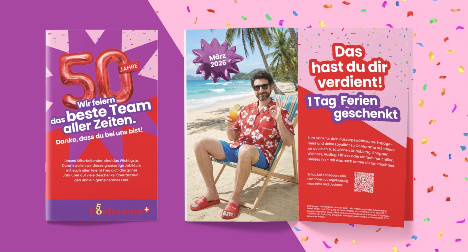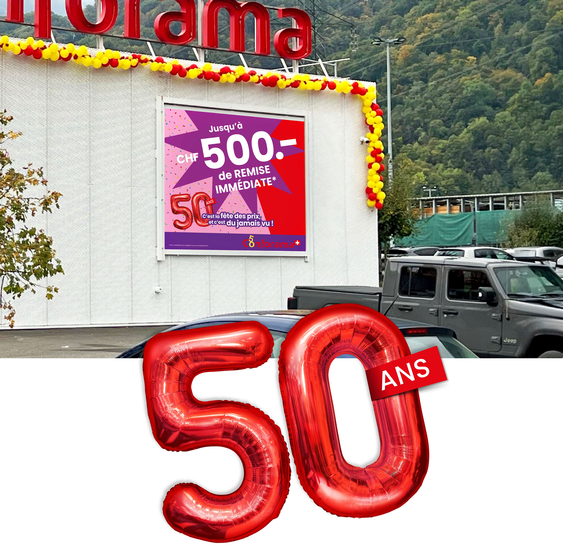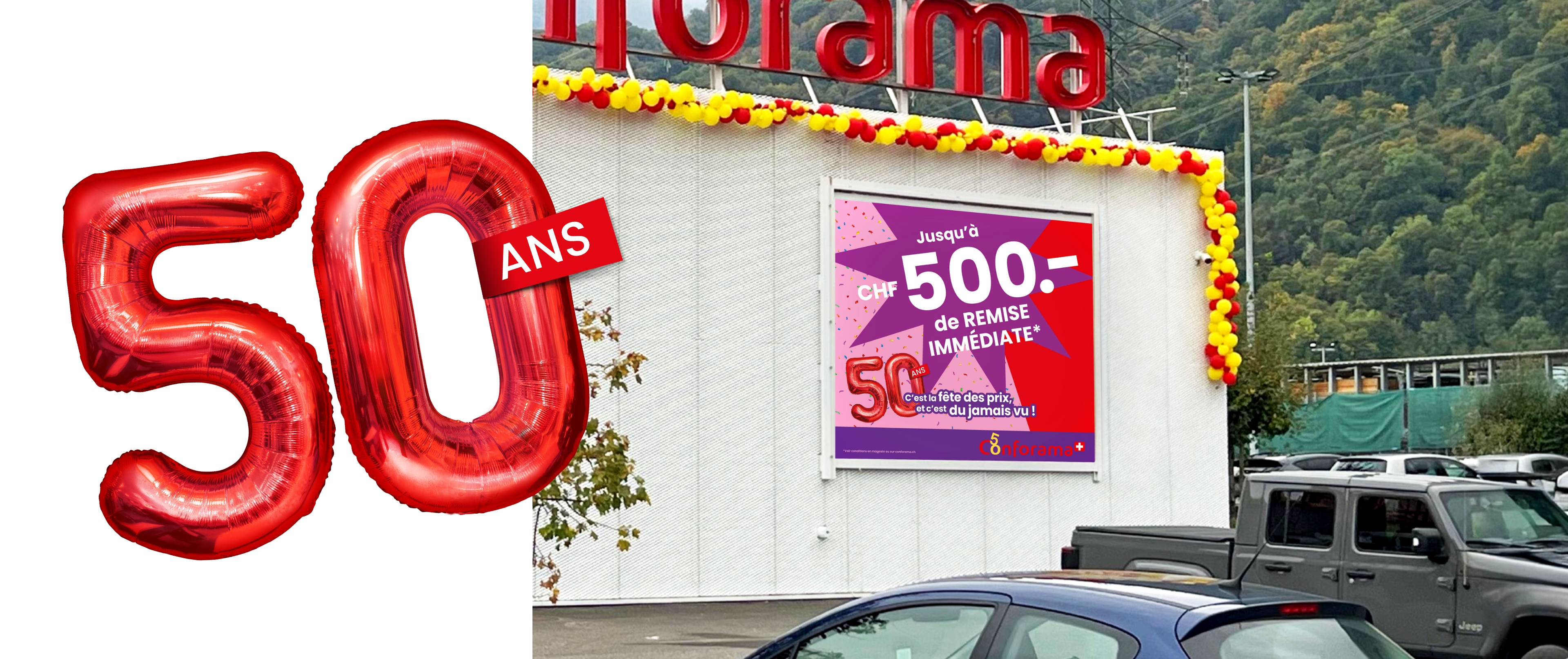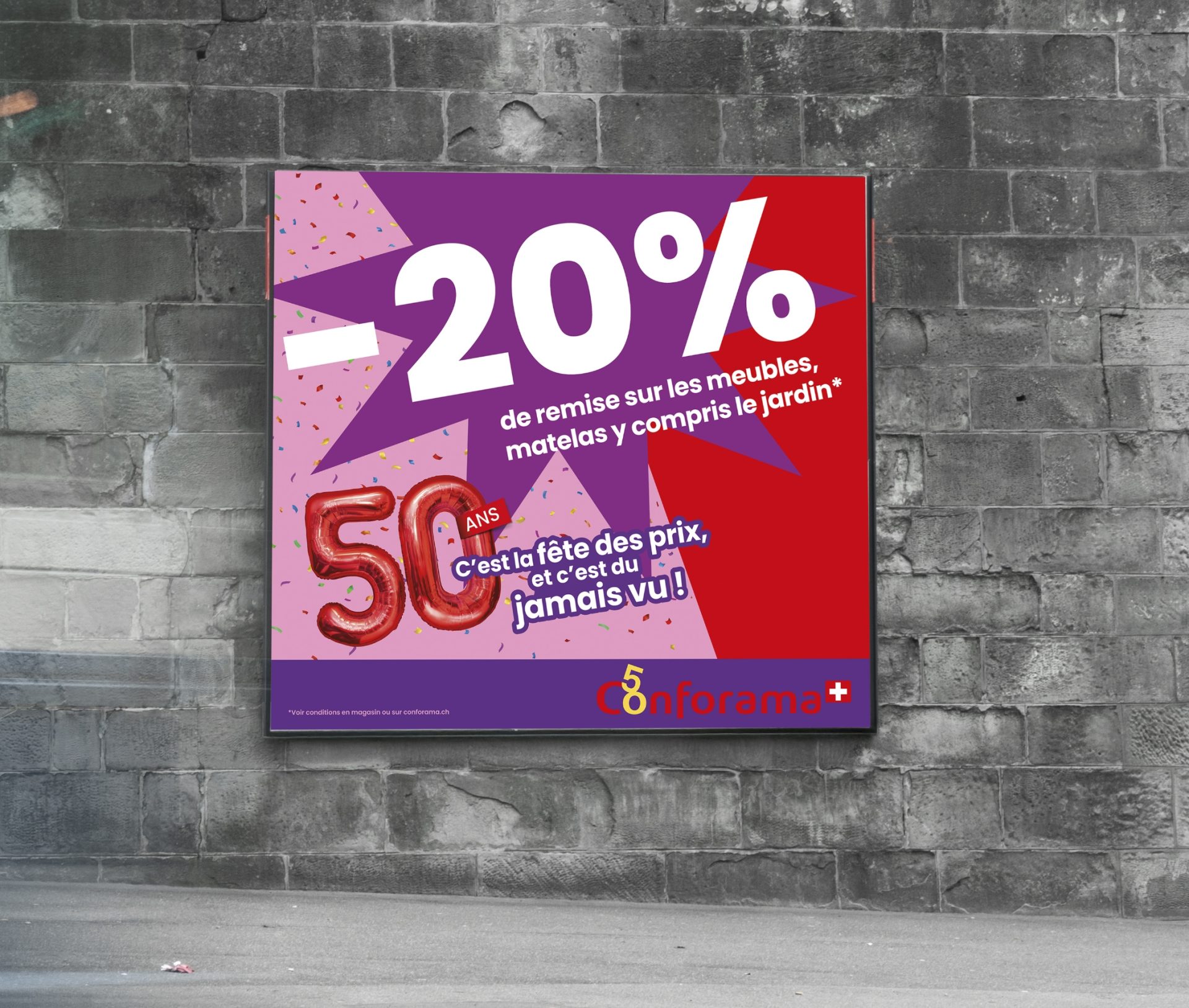 «Wir feiern die besten Preise aller Zeiten» – unter diesem Motto findet bei Conforama Schweiz eine Riesen-Party und Kommunikations-Offensive statt. Der nationale Multispezialist für Möbel, Einrichtungsgegenstände und Elektronik feiert sein 50-jähriges Jubiläum. Wir feiern mit und entwickeln die Jubiläumskampagne inklusive allen Rundum-Aktivierungen.