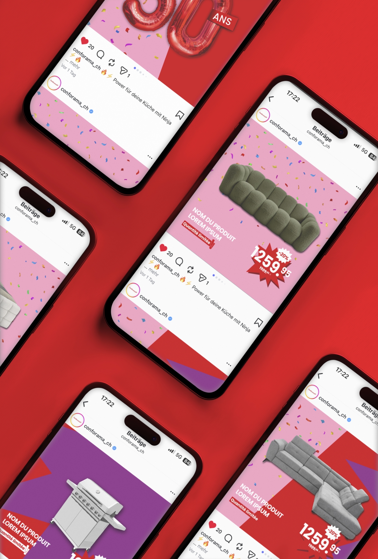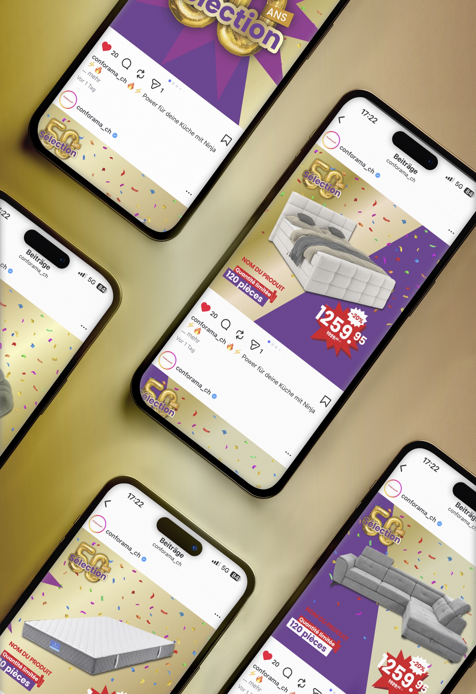Entstanden ist so eine vielseitige Kampagne, die mit verschiedenen Assets und Spots auf allen Kanälen Party-Stimmung verbreitet und mit Humor gute Laune und Lust aufs Einkaufen bei Conforama macht. Und auch im Bereich Employer Branding nach innen alle Mitarbeitenden in dieses Jubiläumsjahr mitnimmt.