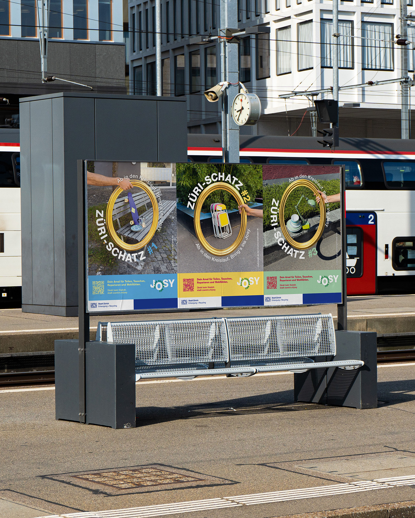 Seit Ende Oktober sorgt Josy auch im Stadtbild für Gesprächsstoff: Die auffällige multimediale Kampagne lädt Zürcher*innen ein, Gegenständen ein längeres Leben zu schenken. STUIQ hat sich auf den Weg gemacht, um echte ZÜRI-SCHÄTZE auf den Strassen zu finden und fordert dazu auf, diese ins Josy zu bringen. Denn was der eine nicht mehr braucht, könnte der neue Lieblingsgegenstand für jemand anderen sein. Bereits jetzt tauschen täglich hunderte Menschen im Josy Gegenstände – ein deutliches Signal, dass das Konzept funktioniert.